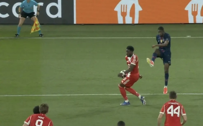 巴黎与拜仁一战上半场的最后阶段,登贝莱传中打在阿方索-戴维斯的手臂上,主裁判沙勒起初并未判罚,但在VAR的提醒之下他观看回放,并最终判罚点球。从回放来看,登贝莱的传中更像是先打在了阿方索的躯干上再弹到了手上,欧足联官方给出解释:“拜仁19号球员左臂触球,手臂处于非自然姿态而且远离身体。”
